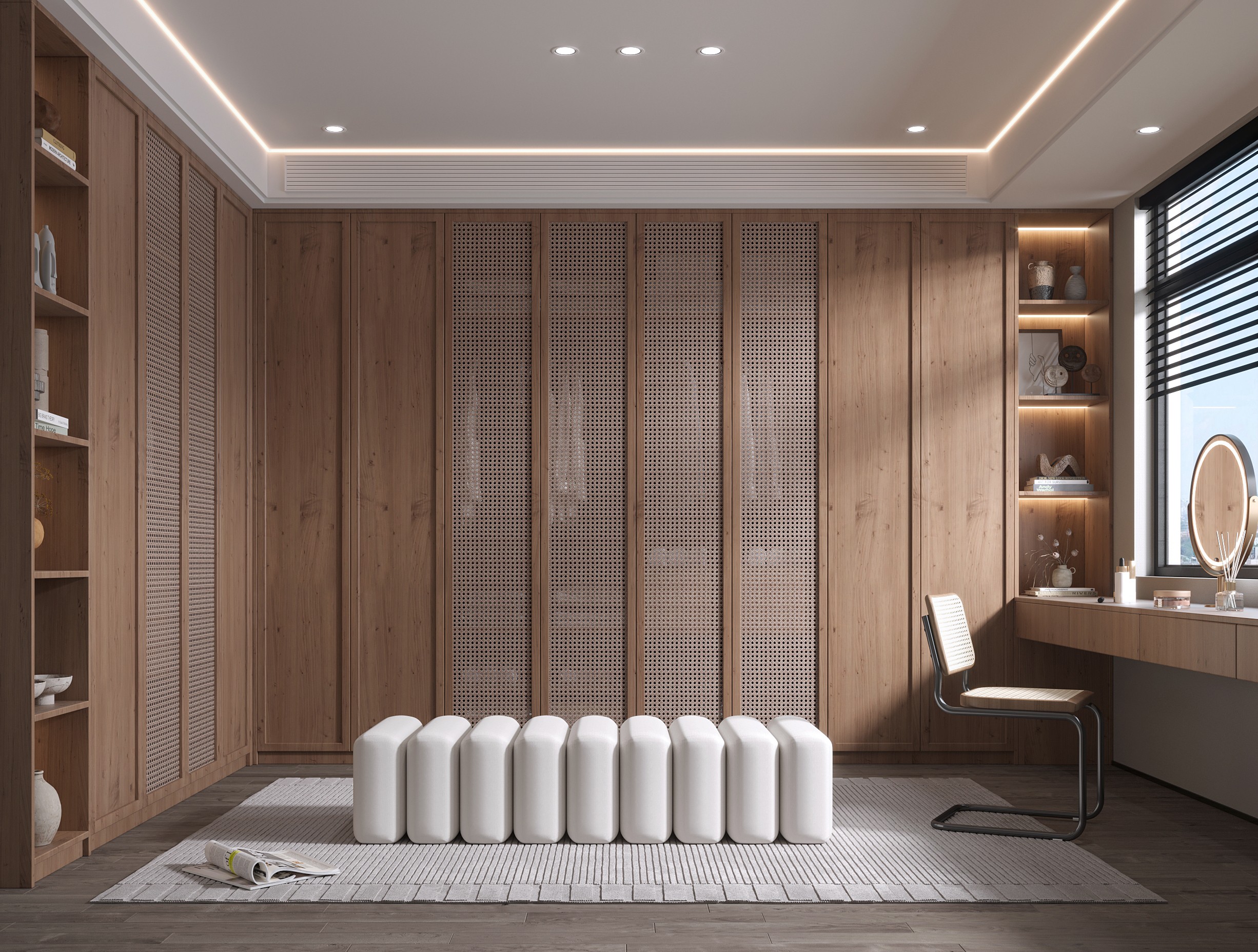 免拉手設計的衣柜門板無需固定的拉手,可以節(jié)省一部分空間。這對于小戶型的家庭來說,無疑是一個非常實用的設計。
