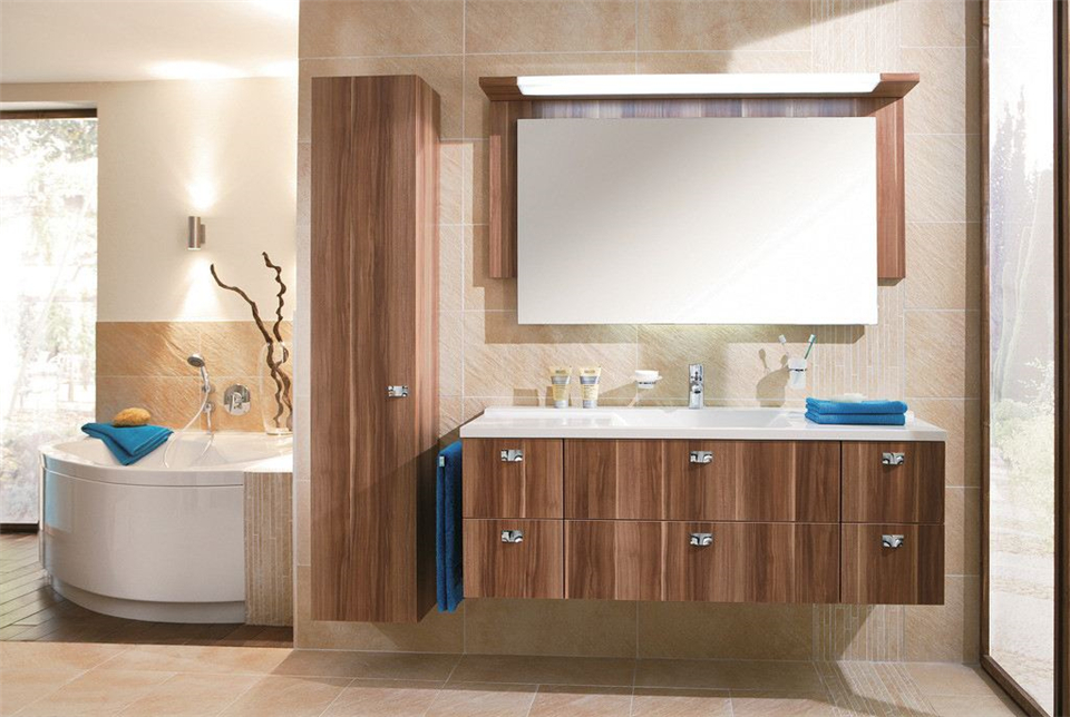 懸掛式:懸掛式浴室柜是懸掛在墻上,下面沒有“腳”支撐,不與浴室潮濕地面的接觸,積水不容易接觸到浴室柜,有效防止受潮,延長使用的時間,尤其適合衛(wèi)生間沒有設(shè)計干濕分離的家庭,因為懸掛式的浴室柜部是懸空的,不占地面面積,最大化的利用空間,尺寸一般較小,懸掛在墻上讓衛(wèi)生間更通透、干凈,所以對于小戶型和家庭成員不多的家庭來說懸掛式浴室柜式不錯的選擇,懸掛式浴室柜緊貼墻面,距離地面有非常大的空間,清理時沒有衛(wèi)生死角的問題,對于處女座和有潔癖的人來說,簡直是福音,但是在日常使用中,不要放置過重的重物。