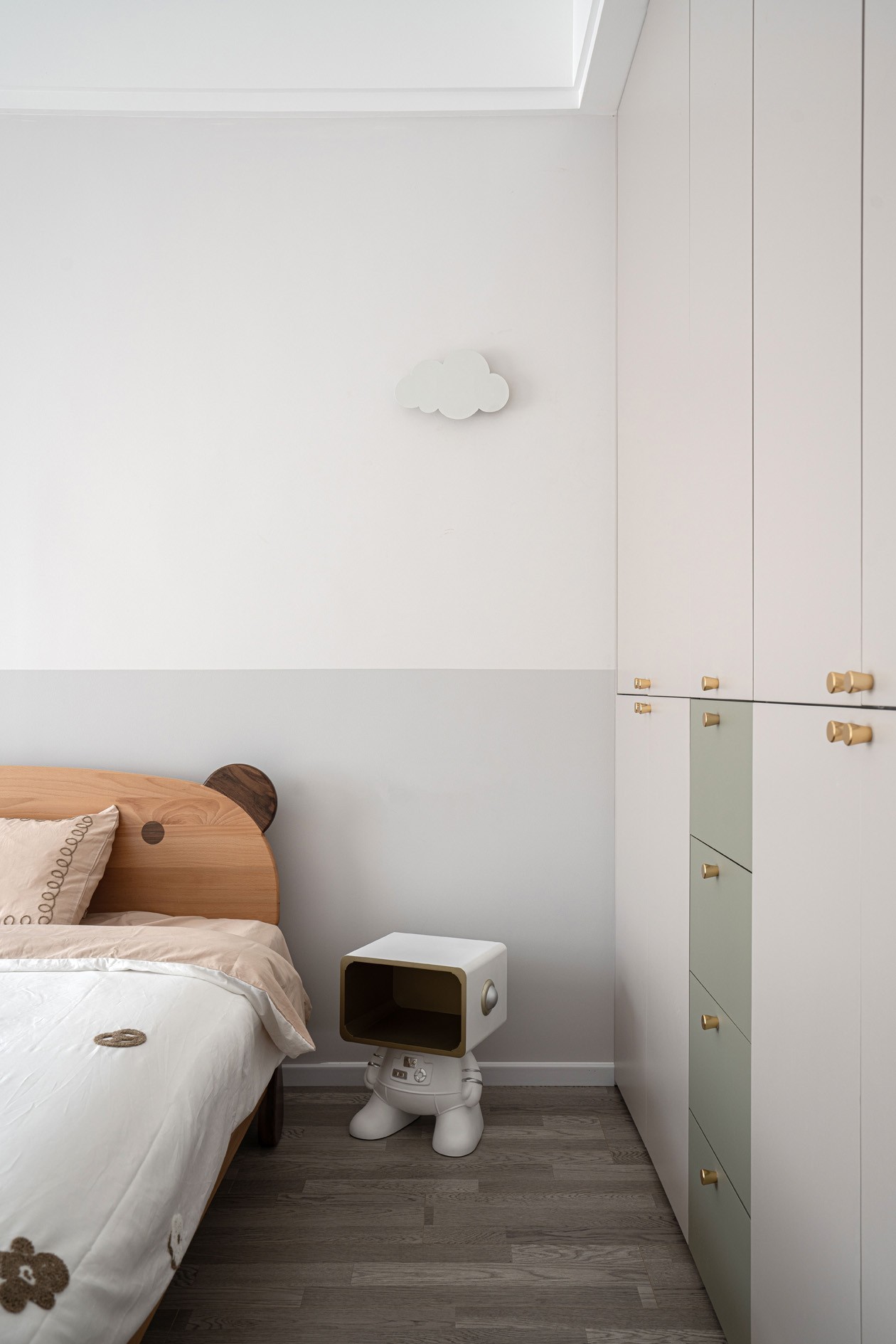 整排衣柜在滿足收納要求的同時也裝飾了空間