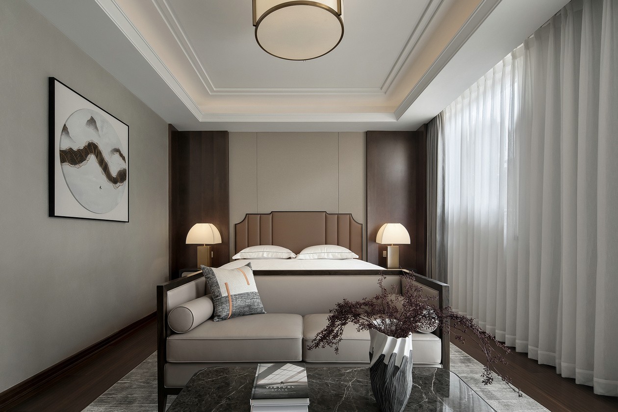 優(yōu)雅風(fēng)漫情和現(xiàn)代東方調(diào)性彌整個(gè)主臥空間,以自然意象呈現(xiàn)超越實(shí)物的意境,以藝術(shù)構(gòu)筑空間的生活情趣。